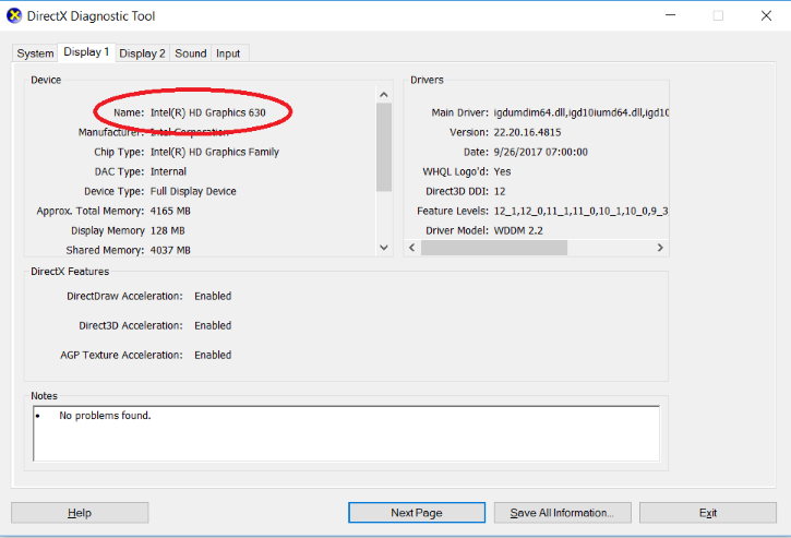 2. Cách kiểm tra card màn hình laptop bằng lệnh dxdiag:
