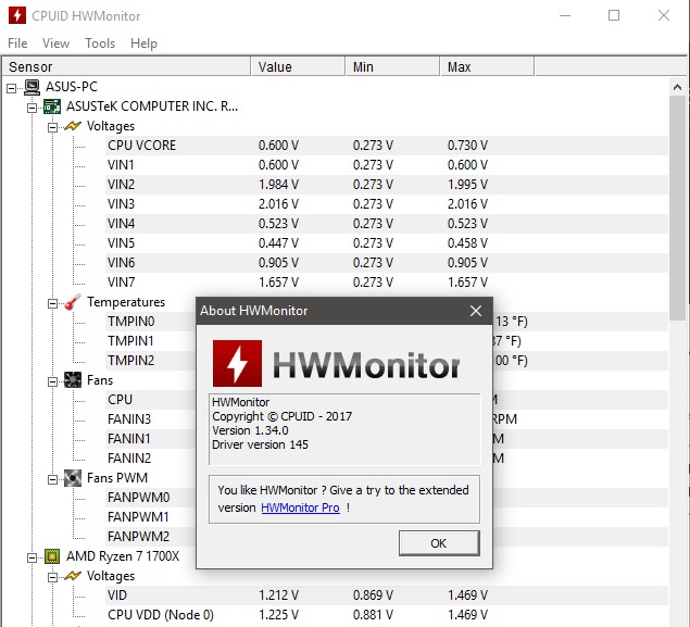 - HWMonitor: Đây là một phần mềm miễn phí khác để giám sát nhiệt độ, điện áp và tốc độ quạt trên máy tính. Nó cũng cung cấp thông tin về độ chai của pin và mức tiêu thụ điện năng của laptop.