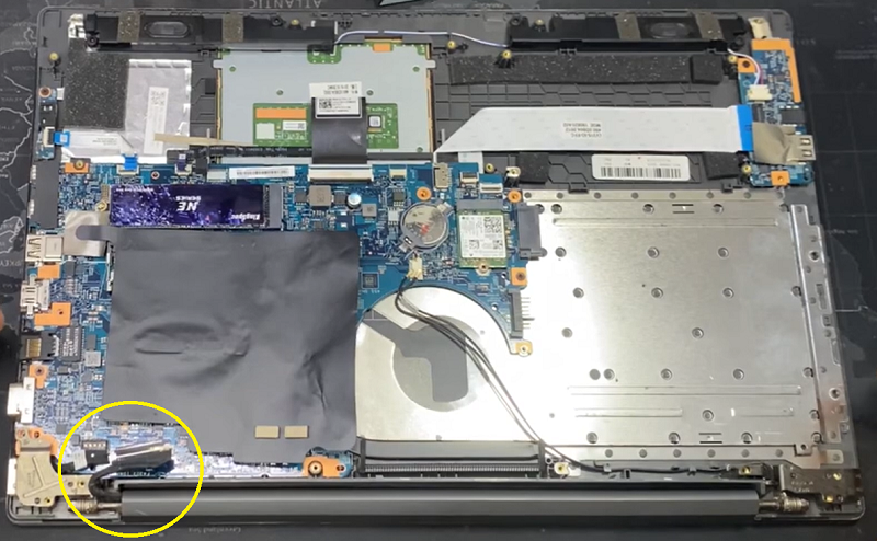 Bước 9: Tháo đầu cáp màn hình ra khỏi bo mạch chủ.