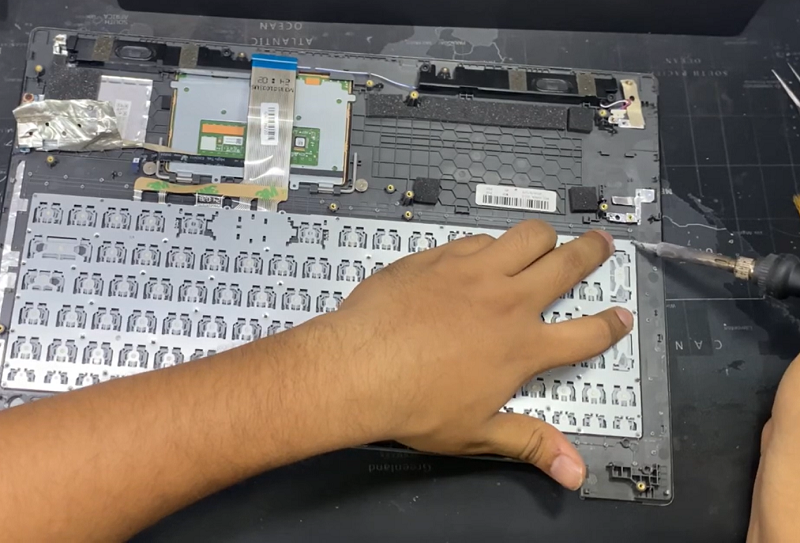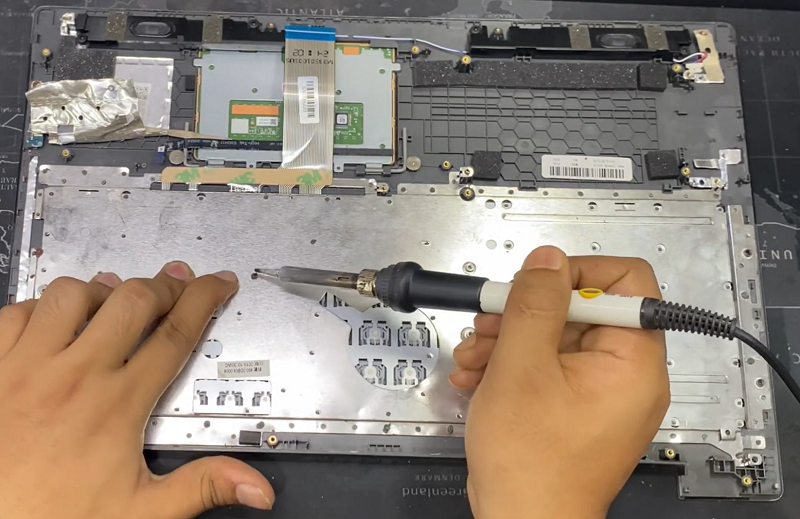Bước 15: Lấy bàn phím laptop mới ra và hàn chặt lại bàn phím vào khung laptop như trước.