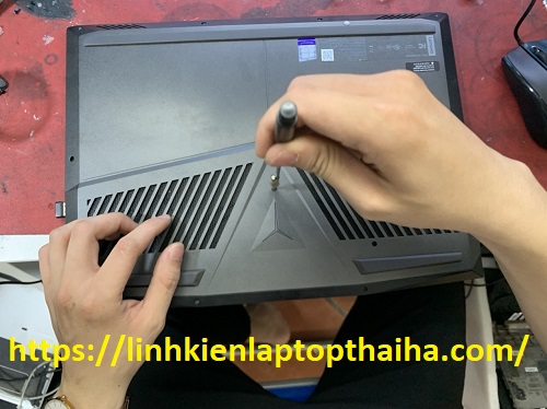 Bước 2: Tháo toàn bộ ốc cố định mặt sau của laptop ra khỏi laptop và nhấc mặt đáy laptop ra