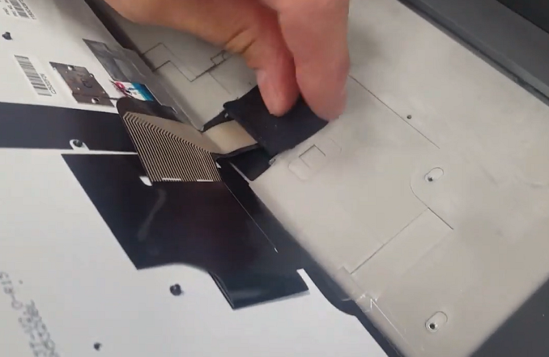 Bước 8: Tiến hành kéo bàn phím ra để lộ phần đầu cáp bàn phím đang kết nối bo mạch và tháo cáp bàn phím khỏi bo mạch.