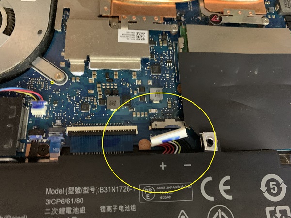 Bước 3: Tháo cáp pin đang gắn với bo mạch ra để ngăn trường hợp chập điện đáng tiếc không mong muốn.