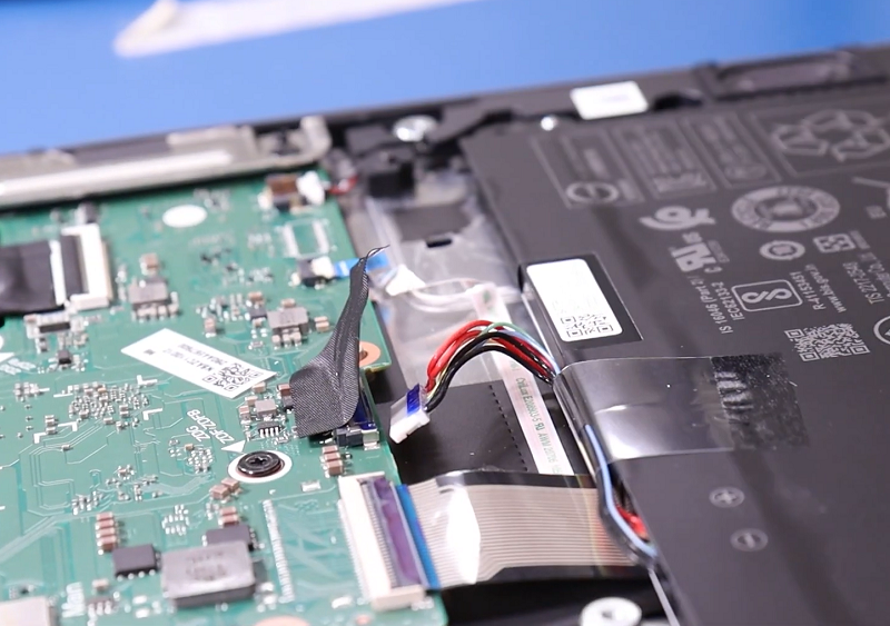 Bước 3: Tiếp theo cần tháo cáp pin đang gắn vào bo mạch chủ.