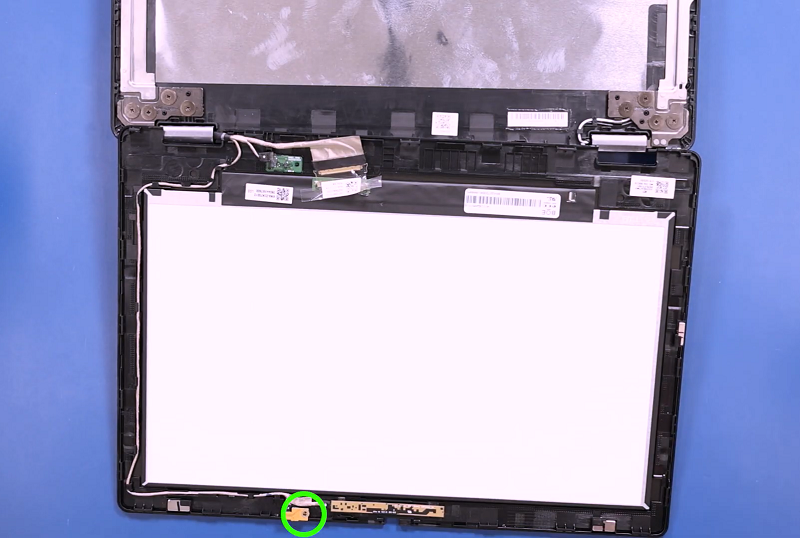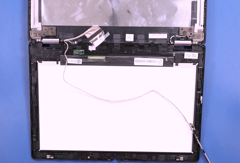 Bước 5: Sau khi gỡ tấm nhựa ra thì nhẹ nhàng nhấc màn hình lên chú ý màn hình vẫn đang được gắn với laptop bằng cáp màn hình, cáp cảm ứng và camera.
