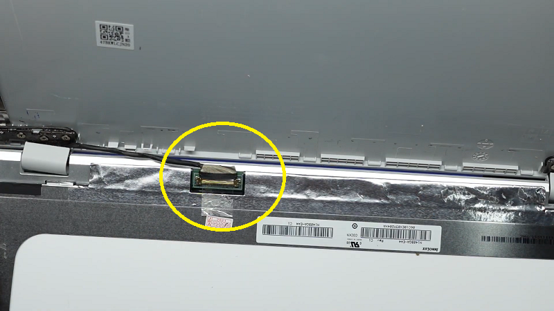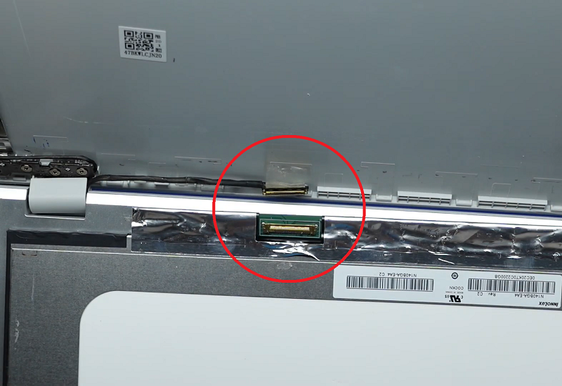 Bước 10: Lấy màn hình laptop mới và lắp cáp màn hình vào.