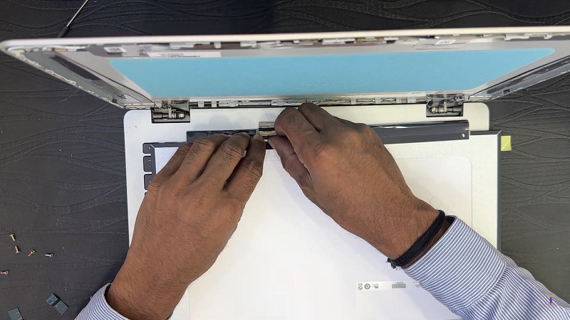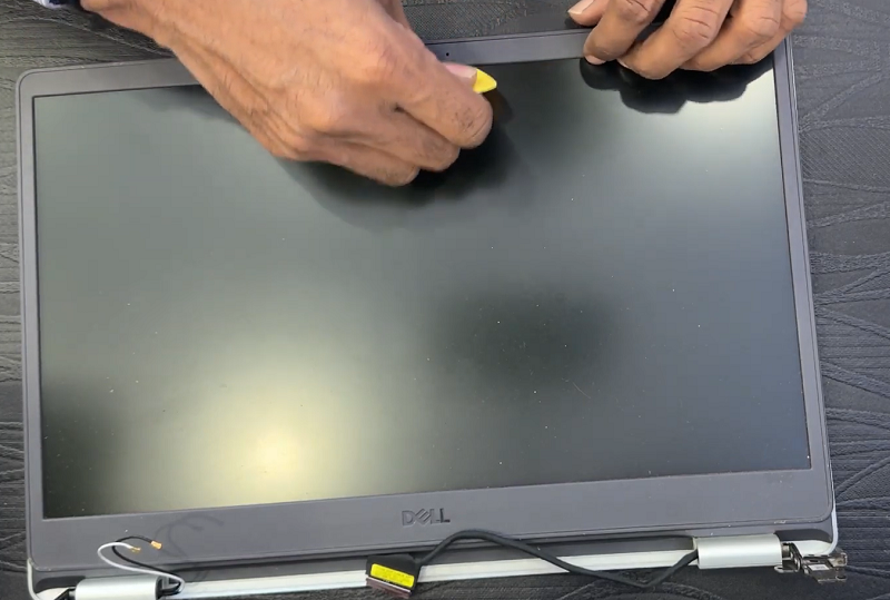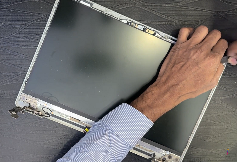 Bước 6: Sử dụng dụng cụ cậy mở màn hình tháo màn hình ra khỏi cụm trên laptop. Sau đó lắp màn hình mới vào lại laptop.