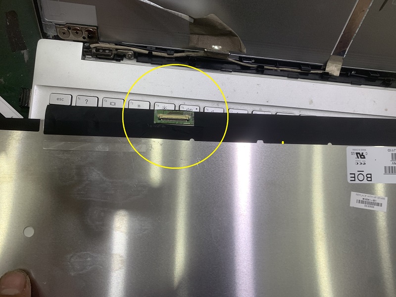 Bước 6: Tháo Cáp Màn Hình: Màn hình đang được kết nối với laptop bằng cáp màn hình, cần tháo cáp màn hình ra khỏi màn hình cũ