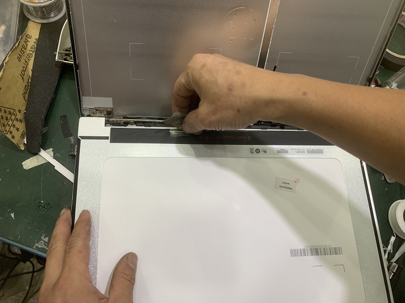Bước 3: Tháo Siu Màn Hình: Bạn sẽ thấy màn hình được dán vào mặt B của laptop bằng 2 miếng siu dán màn hình, hãy nhẹ nhàng kéo siu dán màn hình ra để tháo màn hình đang được dán vào mặt cụm màn hình
