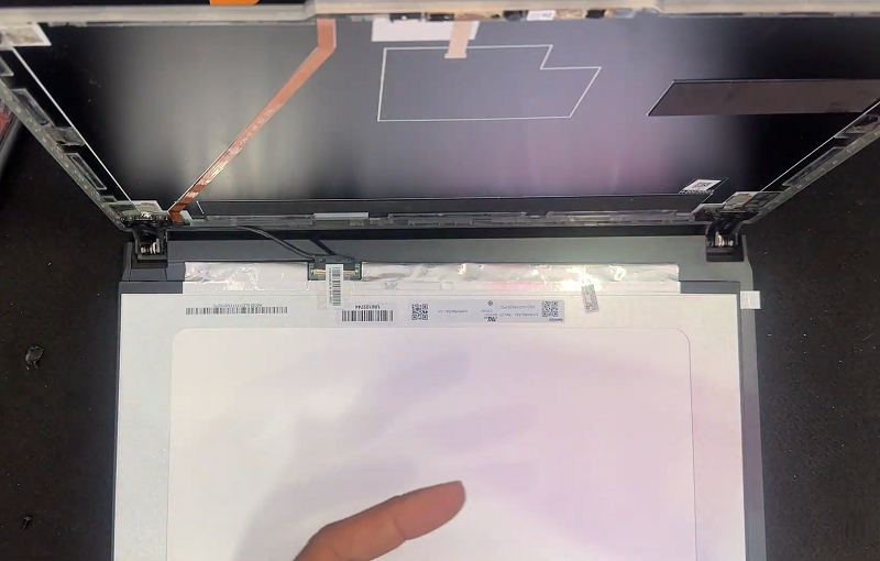 Bước 5: Cậy màn hình bị hỏng khỏi vị trí rồi hạ xuống và tháo đầu cáp đang gắn vào màn hình ra.
