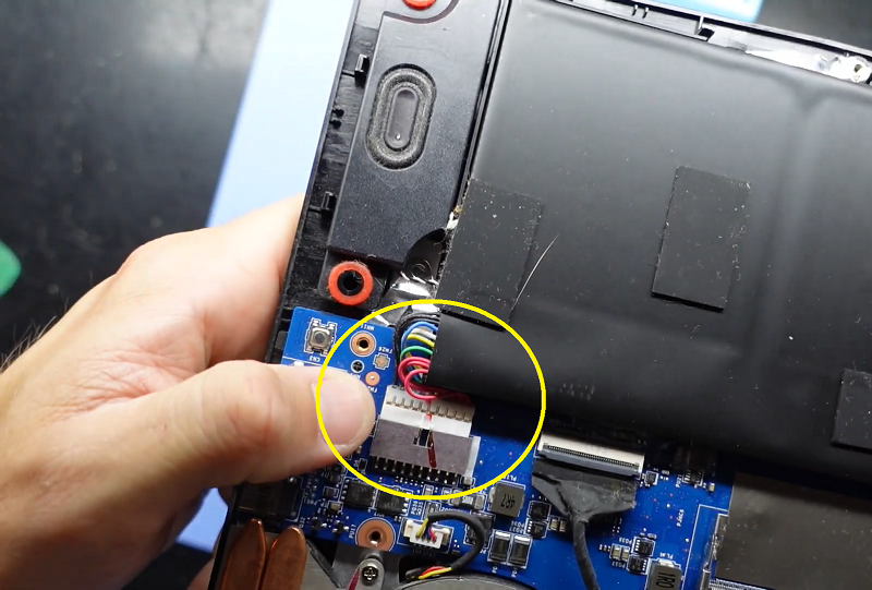 Bước 8: Úp laptop xuống lắp lại cáp pin vào bo mạch và mặt đáy của laptop rồi tiến hành khởi động lại 1 lần nữa kiểm tra màn hình mới không có vấn đề gì là đã thành công thay màn hình laptop mới.